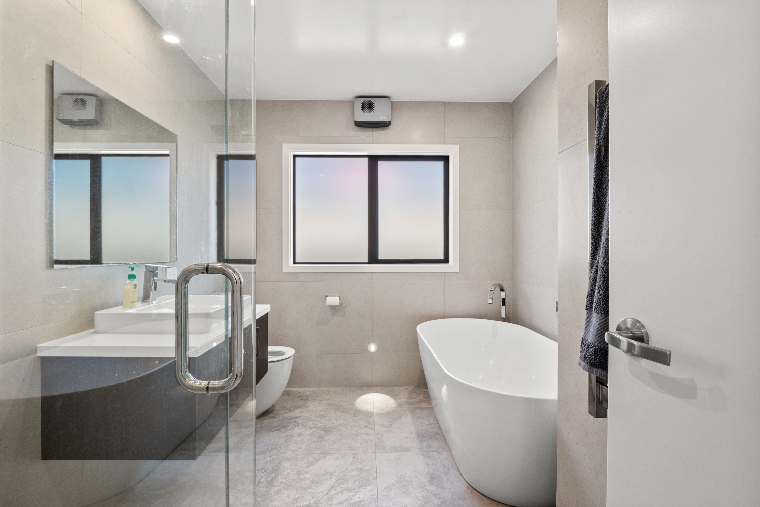 The home offers four well-proportioned bedrooms, including a comfortable master retreat, and two beautifully finished fully-tiled bathrooms with under floor heating for added winter comfort. Ducted heat pumps throughout the bedrooms ensure consistent temperature control year-round, complemented by thoughtful extras such as sensor lighting in hallways and bathrooms, an alarm system, hardwired smoke alarms, high spec insulations and a loft space above the garage.